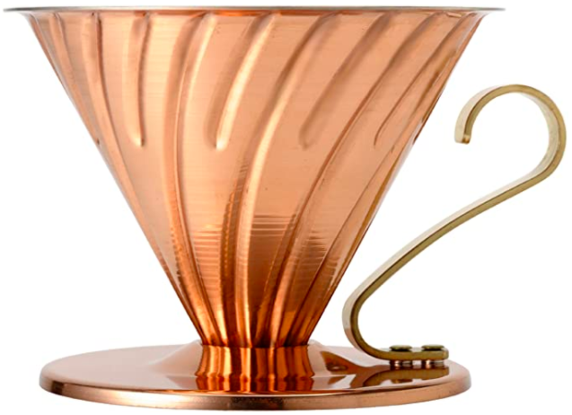 另外,滤杯有不同材质。我个人喜欢瓷质的,比较有质感。另外比较推荐的是 玻璃质的。黄铜质的特别漂亮,但是散热太快,不利于冲咖啡,不是最推荐。