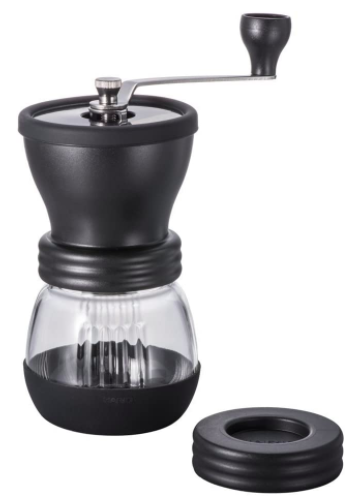 Hario "Skerton" 手动磨豆器。大约不到$40。日本原装。适合1~5人咖啡用量。这个磨豆器比Porlex大很多,磨起来没那么费劲。家用比较合适,旅行就稍嫌个头大了些。