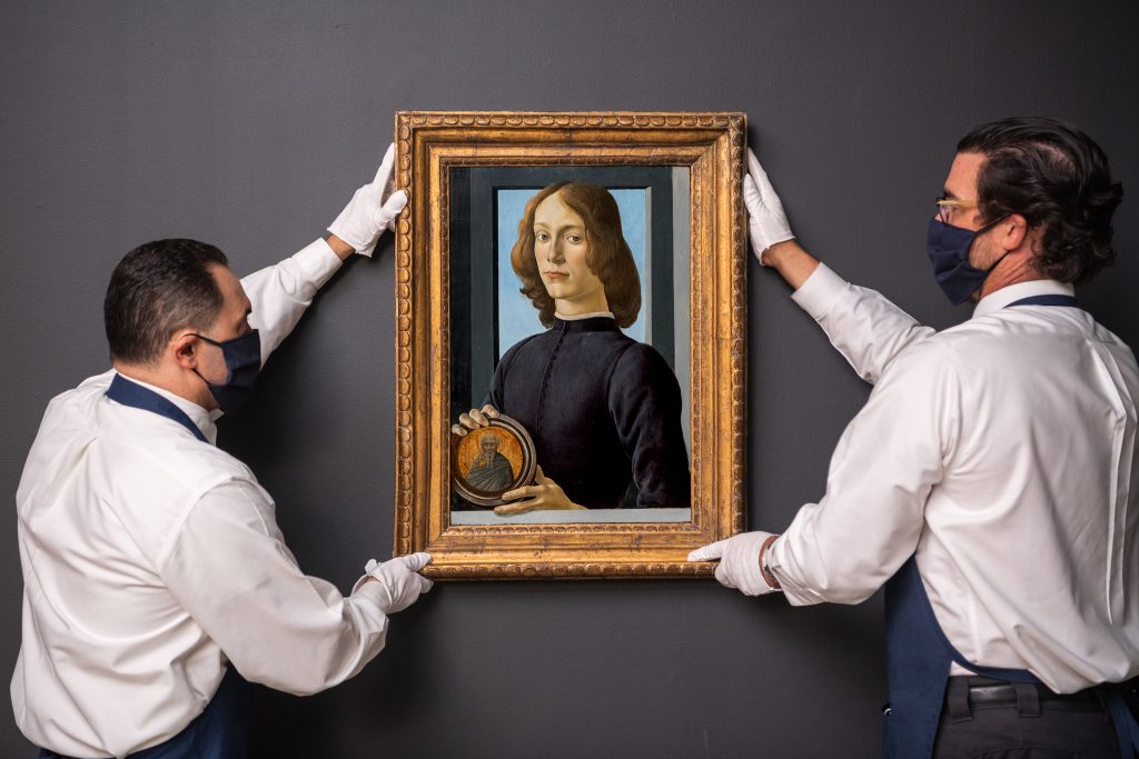 (Sandro Botticelli's Portrait of a Young Man Holding a Roundel, (c. 1444/5 – 1510) auctioned at Sotheby's New York on January 28, 2021. Courtesy of Sotheby’s.)