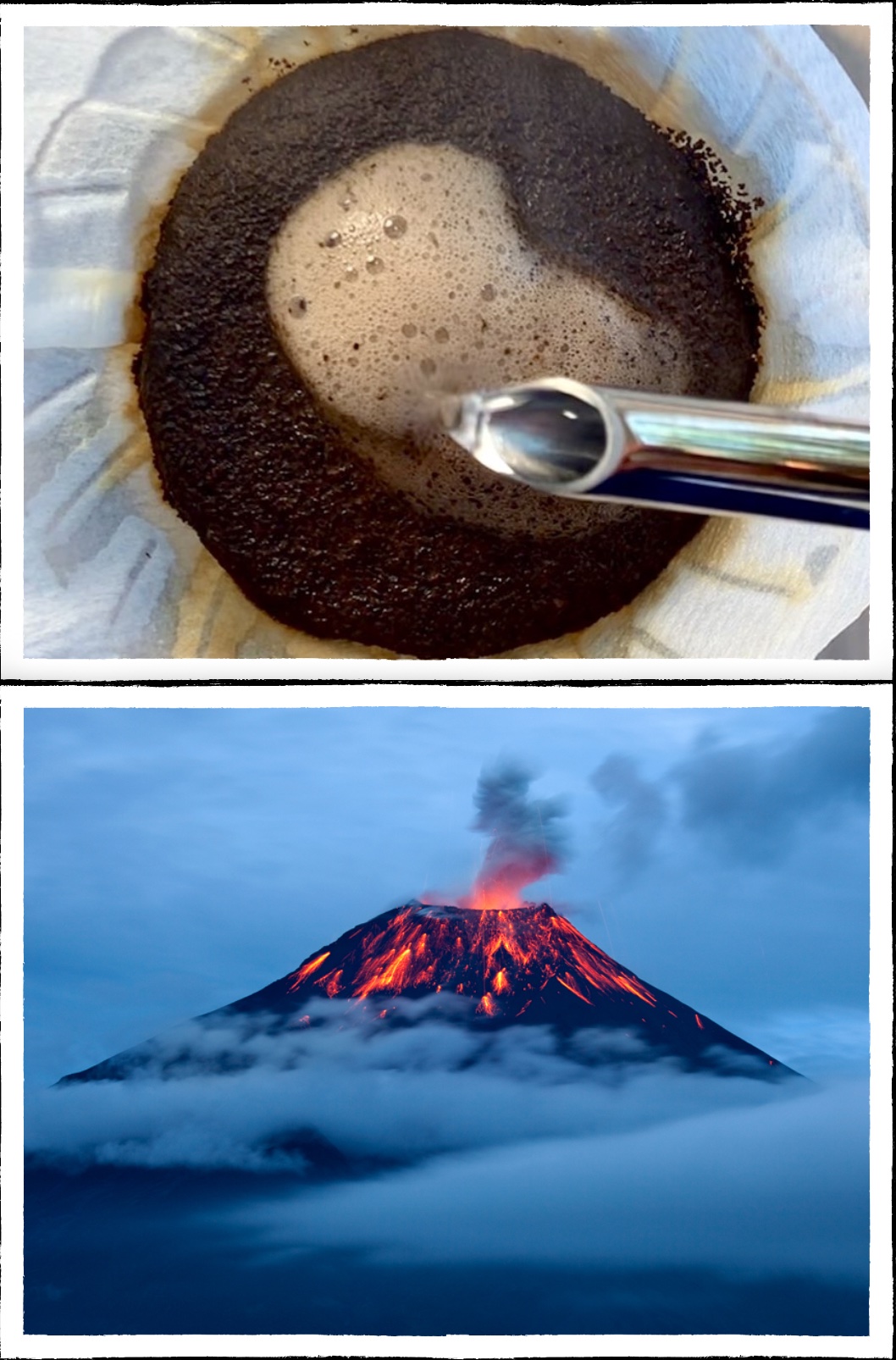 兩者結合而成的三段式火山沖,通過延長燜蒸,推遲萃取,在突出甜感順滑,規避苦澀的同時,又相對均衡提取風味。